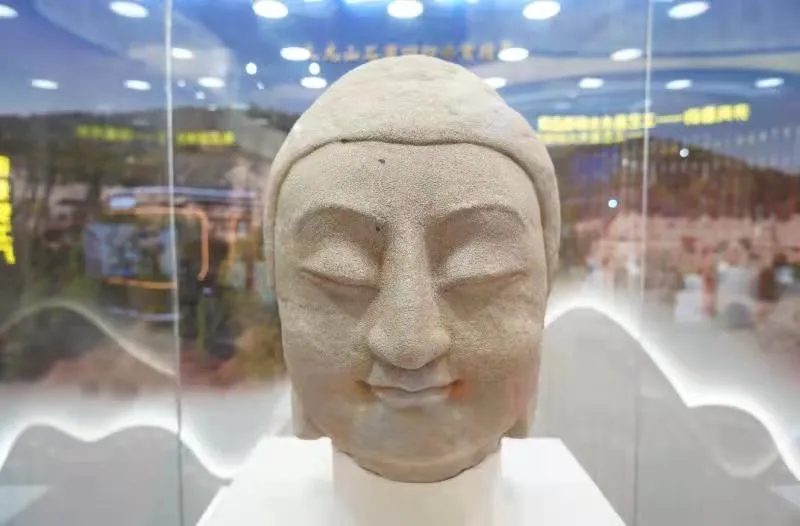 在山西展区,最“出圈”的,要数天龙山石窟回归佛首特展《复兴路上 国宝归来》。