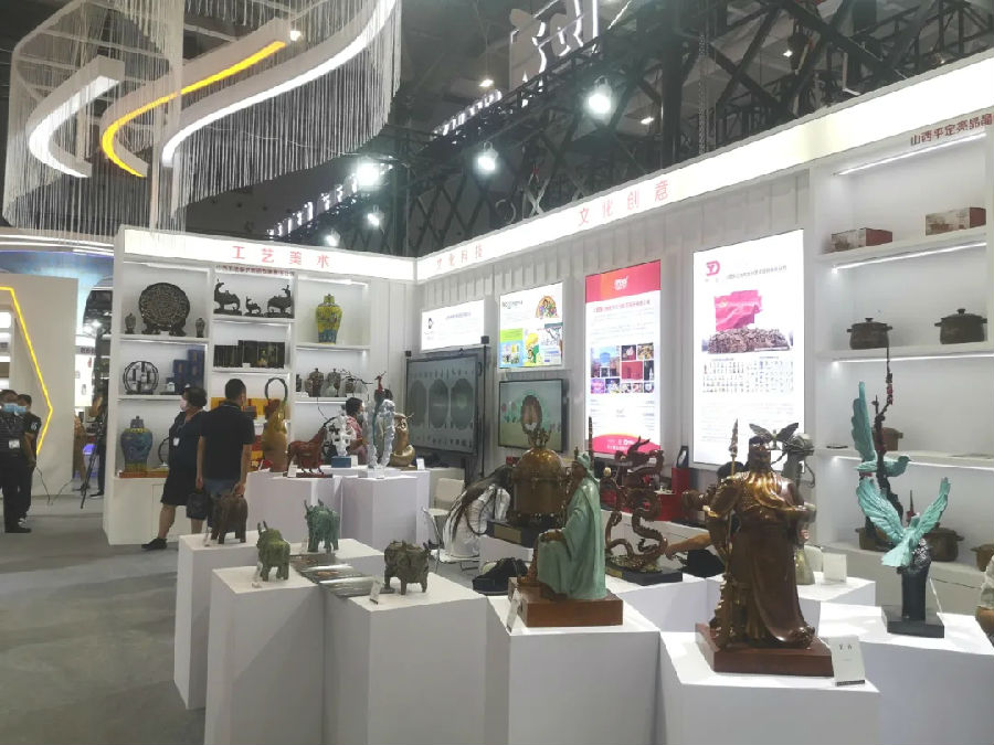 有声图书、3D文物展示、山西原创动漫IP、青铜雕塑,还有珐华器、平遥推光漆器、澄泥砚等各类非遗技艺及产品展示......