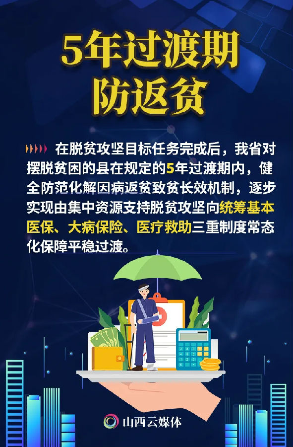 近日,省医疗保障局、省民政厅、省财政厅等多部门联合印发《关于巩固拓展医疗保障脱贫攻坚成果有效衔接乡村振兴战略的实施方案》,方案明确,“三保险、三救助”农村建档立卡贫困人口医疗保障帮扶政策执行到2021年底,从2022年1月1日起,对特困人员(含孤儿和事实无人抚养儿童)、低保对象和乡村振兴部门认定的返贫致贫人口等,执行参保分类资助、基本医保普惠、大病保险倾斜、医疗救助托底保障政策。