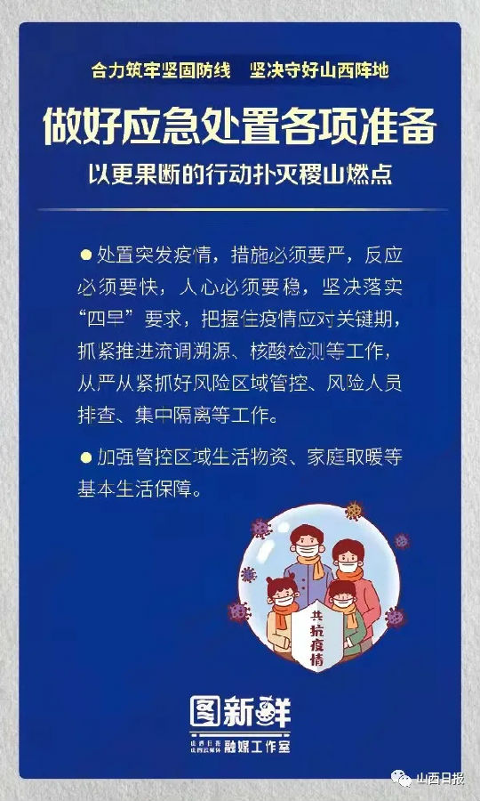 他强调,要认真贯彻习近平总书记关于疫情防控重要指示精神和党中央决策部署,有效做好疫情燃点应对处置工作,合力筑牢疫情防控坚固防线,坚决守好山西阵地,为全方位推动高质量发展营造良好环境。