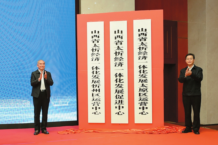 十二月二十九日,山西省太忻经济一体化发展促进中心及分支机构揭牌仪式在太原举行。省委书记林武,省委副书记、省长蓝佛安出席并共同揭牌。记者史晓波摄