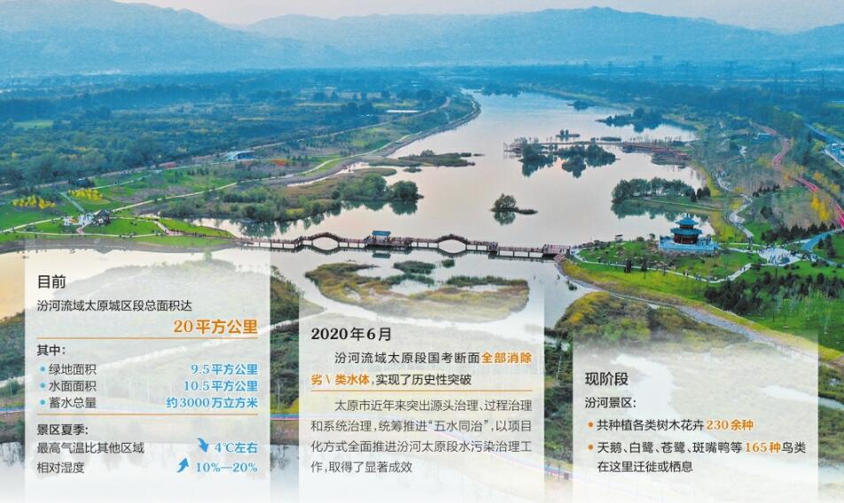 汾河,是三晋儿女的母亲河,也是黄河的第二大支流,流经太原境内188公里,其中城区段43公里。2000多年前,古人就在这里留下“泛楼船兮济汾河,横中流兮扬素波”的优美诗句。然而,一段时期里,由于流域内开采过度、采砂排污,生态遭到极大破坏。
