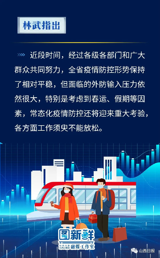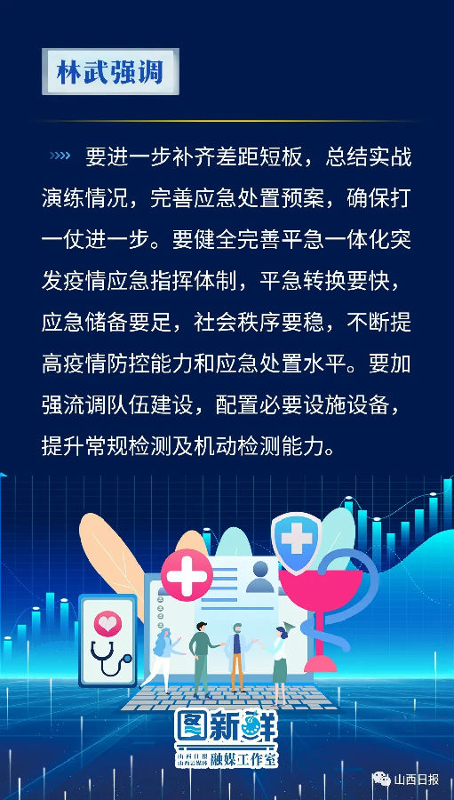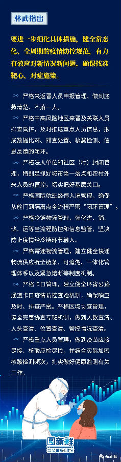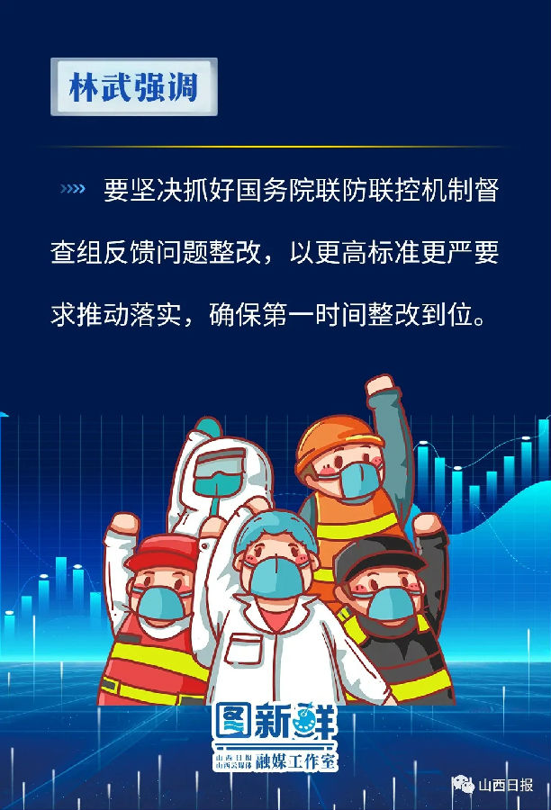 林武强调,要深入贯彻习近平总书记关于疫情防控重要指示精神,进一步健全责任体系、扣紧责任链条,进一步细化具体措施、补齐差距短板,不断提高防控工作的针对性有效性,守好守牢疫情防控各道防线各个关口。