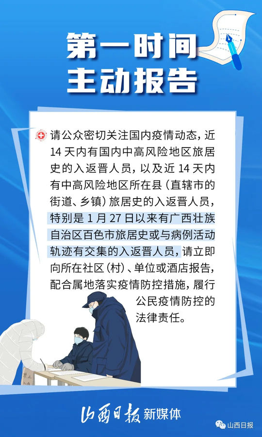 广西百色疫情形势严峻,存在外溢风险。当前正处于春节假期结束,人流物流高峰期,为持续巩固拓展我省疫情防控成果,保障我省人民群众的身体健康,维护正常的社会秩序,省疾病预防控制中心发出紧急提示!