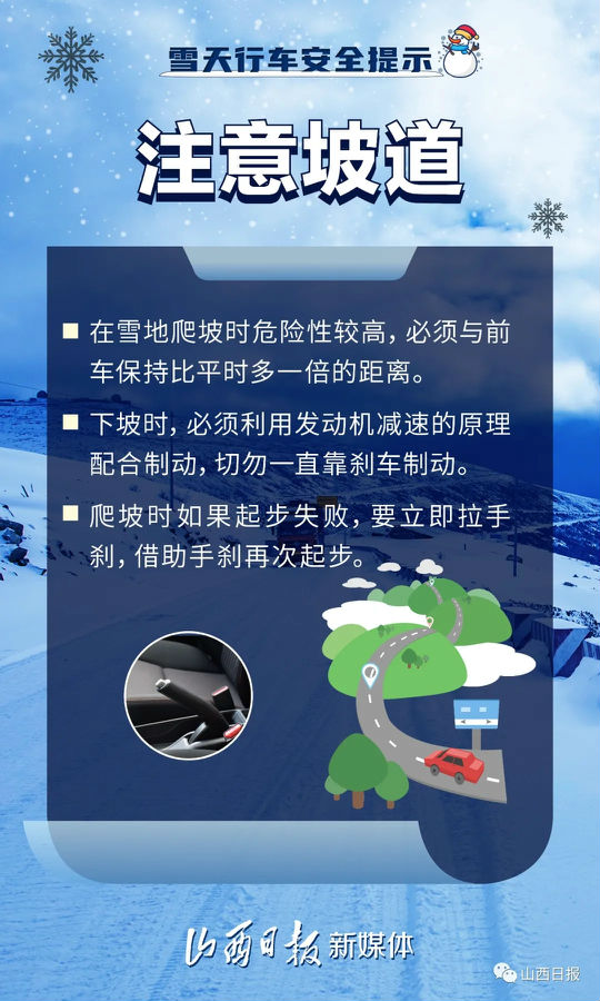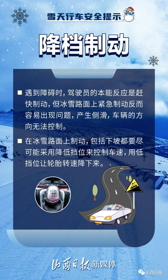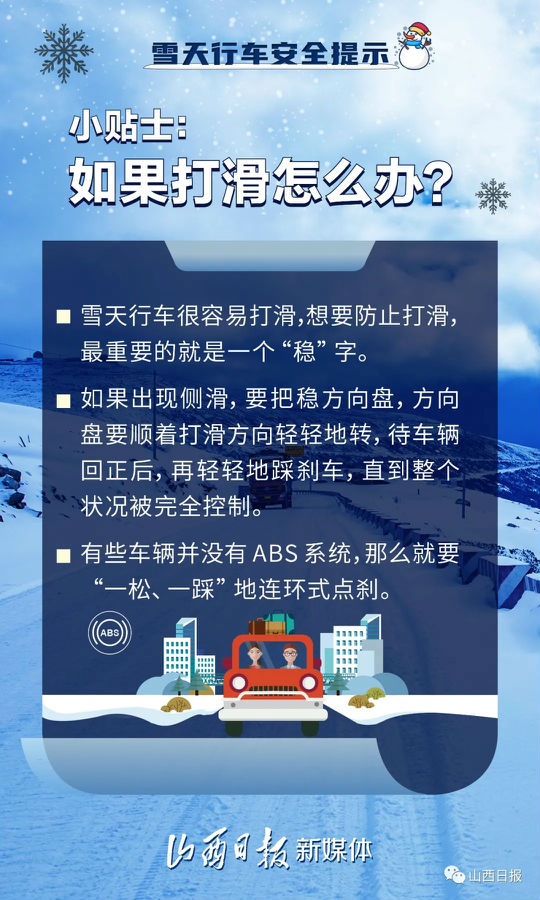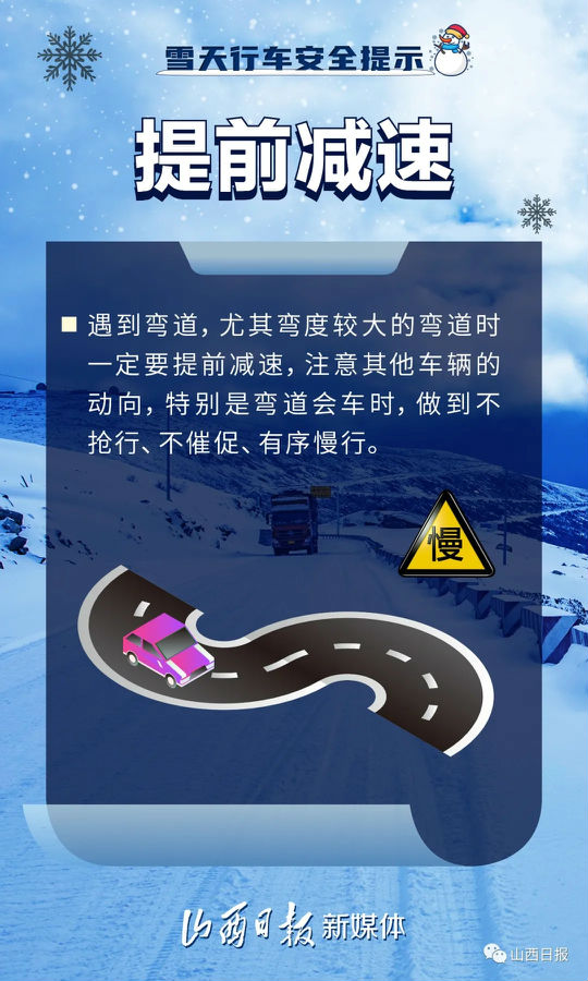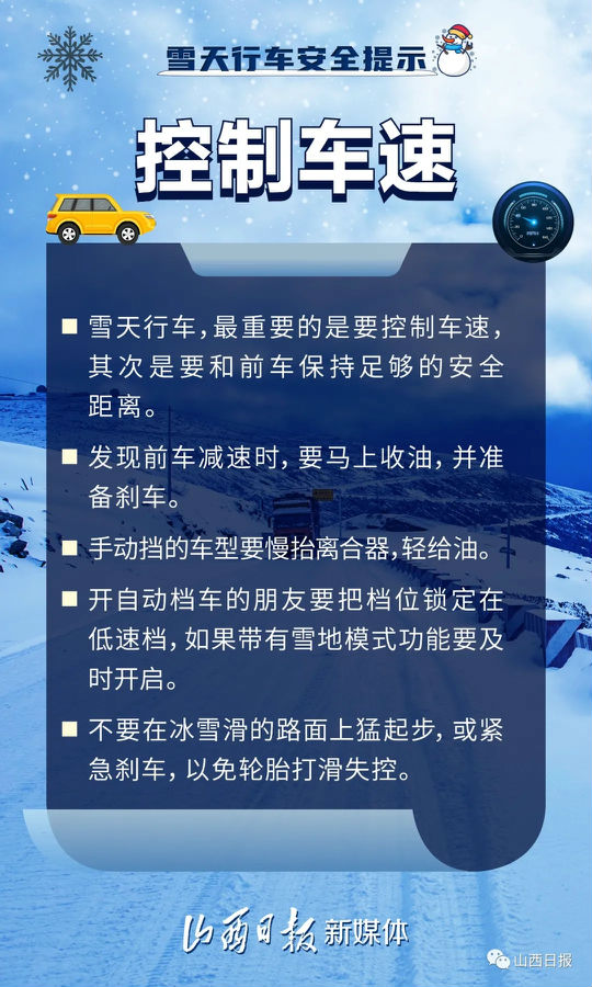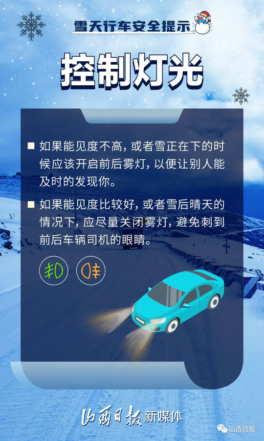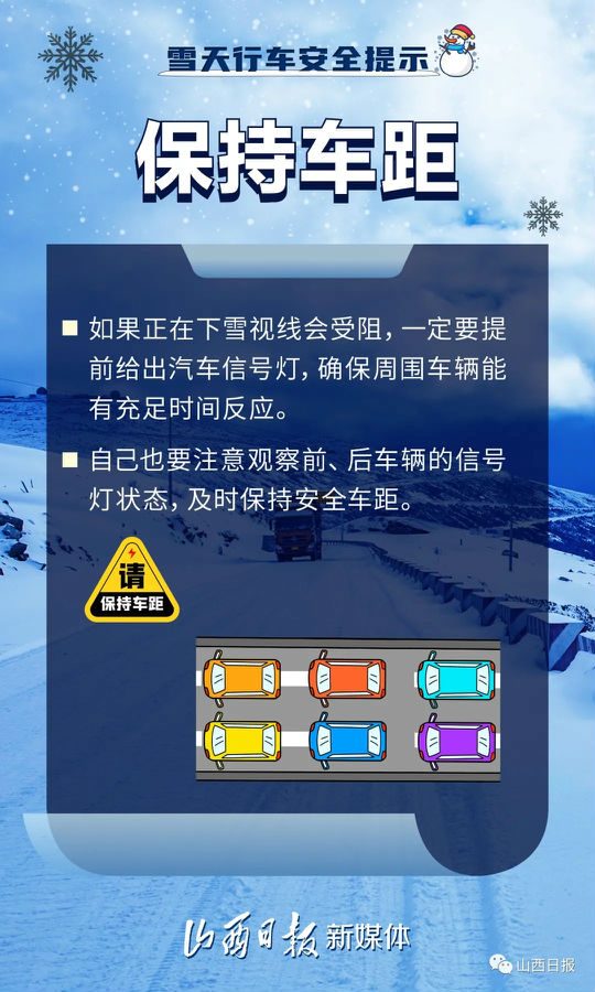近日,受冷暖空气共同影响,我省北中部将出现降雪天气,累积降水量为1-12毫米,累积积雪深度为1-10厘米。降雪会造成道路积雪和道路结冰,那么雪天行车应该注意哪些问题呢?