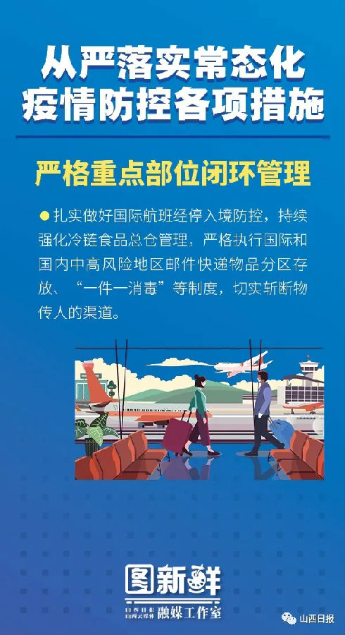 他强调,要深入学习贯彻习近平总书记考察调研山西重要指示精神,认真落实党中央及省委关于疫情防控的部署要求,坚持“外防输入、内防反弹”总策略和“动态清零”总方针,抓紧抓实抓细疫情应急处置和常态化疫情防控各项措施,以果断有力行动迅速扑灭疫情燃点,巩固来之不易的疫情防控成果。