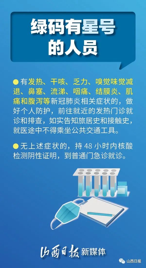 为切实保障疫情防控期间红、黄健康码及绿码有星号人员就医需求,太原市防控办针对不同颜色健康码人员实施分类救治,快来了解一下!