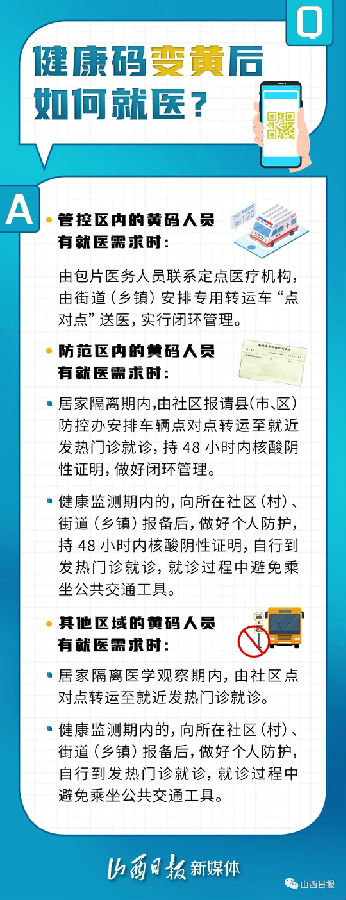日前,太原市疫情防控办组织专家编写了群众普遍关注的12类健康码知识问答,主要包括健康码赋码规则、管控措施、就医方法、解码流程、申诉方式等,便于群众了解健康码政策,更好地配合健康码查验,落实疫情防控要求,有效控制和降低疫情传播风险。