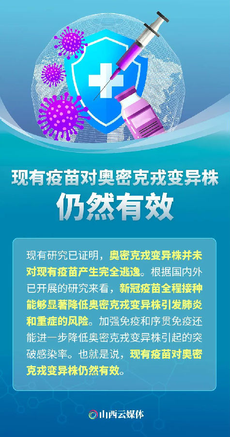 3月19日,国务院联防联控机制召开新闻发布会表示,我国本土疫情还处在发展阶段,多省面临着同时段多地市发生奥密克戎疫情的防控局面。要始终做好个人防护,积极接种新冠病毒疫苗。本轮疫情有什么特点?现有疫苗对奥密克戎变异株有效吗?疫苗研发有何最新进展?一起来看!