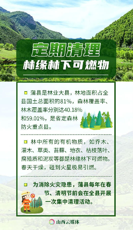 近年来,临汾市蒲县高度重视森林防火工作,坚持“预防为主,积极消灭”,总结出一套行之有效的林下可燃物清理措施和办法,筑牢森林防火墙,切实保障人民群众生命财产安全。