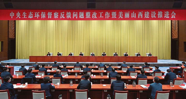 4月2日,中央生态环保督察反馈问题整改工作暨美丽山西建设推进会在太原召开。省委书记林武出席会议并讲话。他强调,要深入学习贯彻习近平生态文明思想和习近平总书记考察调研山西重要指示精神,扎实抓好中央生态环保督察反馈问题整改,深入打好污染防治攻坚战,加快建设人与自然和谐共生的美丽山西,为全方位推动高质量发展提供有力支撑,以优异成绩迎接党的二十大胜利召开。省委副书记、省长蓝佛安主持会议。省领导王拥军、张吉福、卢东亮、韦韬、郑连生、张复明、孙洪山、汤志平出席会议,贺天才通报中央生态环保督察和黄河流域生态环境警示片反馈问题整改情况,于英杰宣读关于表彰山西省污染防治攻坚战先进集体和先进个人的决定。