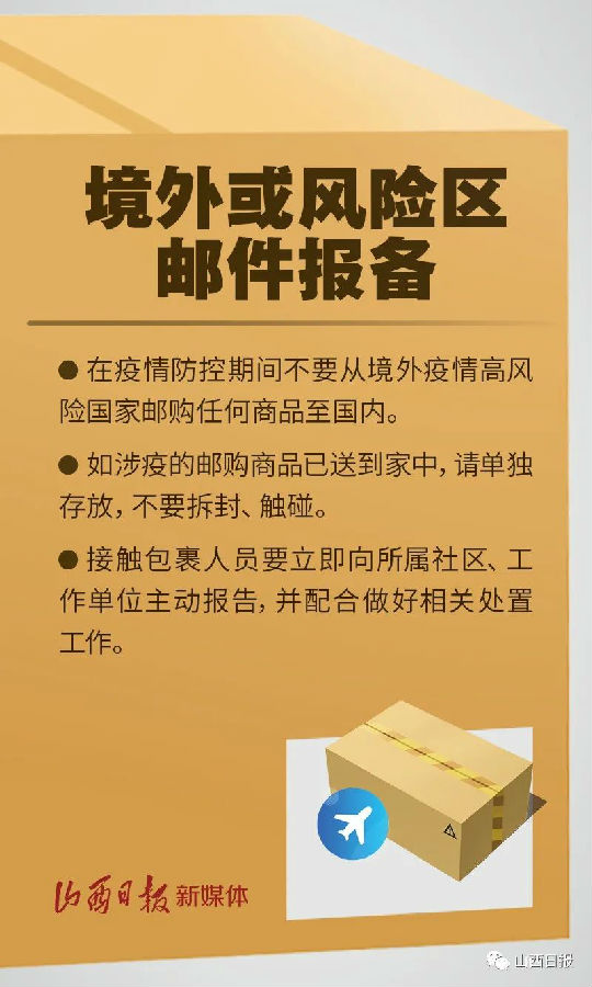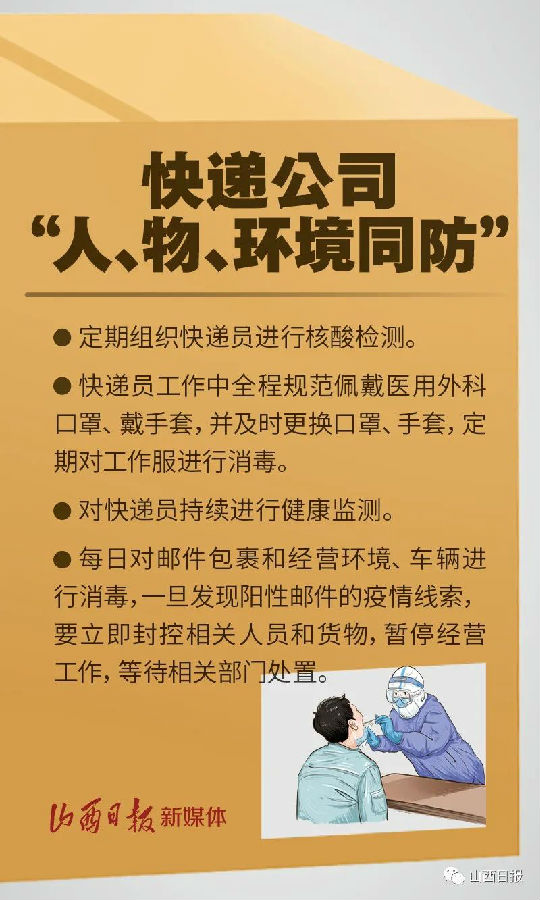4月13日山西省清徐县排查出7例核酸检测初筛阳性病例,均为韵达快递物流园工作人员。为做好“人物同防”,阻断由物传人的传播途径,持续“外防输入、内防反弹”“动态清零”,维护三晋人民身体健康和正常社会秩序,山西省疾病预防控制中心紧急提示如下。