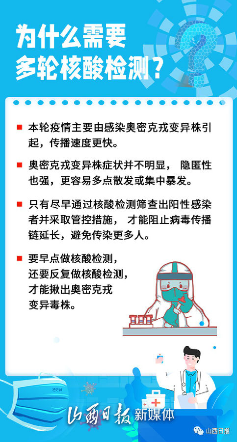 为何要进行一轮又一轮的大规模核酸检测?核酸检测结果是阴性的居民,为何也被要求反复进行核酸检测?参加大规模核酸检测时要注意什么?针对这些问题,看下面解释分析。