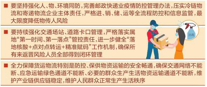 林武指出,近一段时间以来,省委持续部署、强化调度,各地各部门迅速行动、合力防控,我省局部疫情得到快速有效处置。太原清徐等个别县区快递从业人员中出现新发病例,警示我们要深刻认识疫情防控的复杂性、艰巨性、反复性,时刻绷紧应急处置和常态化防控这根弦,因变应变、以快制快,强化各项防控措施落实,坚决守牢不发生疫情外溢和隐匿传播的底线。要对有关县区新发疫情燃点进行提级指挥、果断处置,快速精准开展流调,及时科学划定“三区”,统筹做好排查管控,组织开展区域核酸检测,形成流调、隔离、管控、筛查、救治的严密闭环,迅速切断疫情传播链条。要坚持强化人、物、环境同防,完善邮政快递业疫情防控管理办法,压实冷链物流和寄递物流企业主体责任,严格进、销、储、运等全流程防控和信息监管,最大限度降低物传人风险。要加强对相关风险人员的闭环管控和上溯排查,对快递员、外卖员等加密核酸检测频次。要以县区为单位,抓好邮件快递的集中消毒消杀,严格落实消毒后静置期要求。要加强有关防疫知识宣传,指导群众安全接收邮件快递等物品。