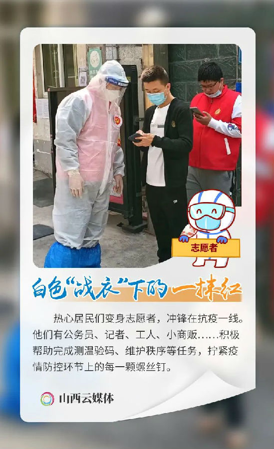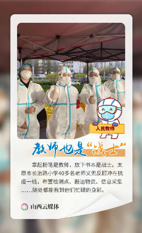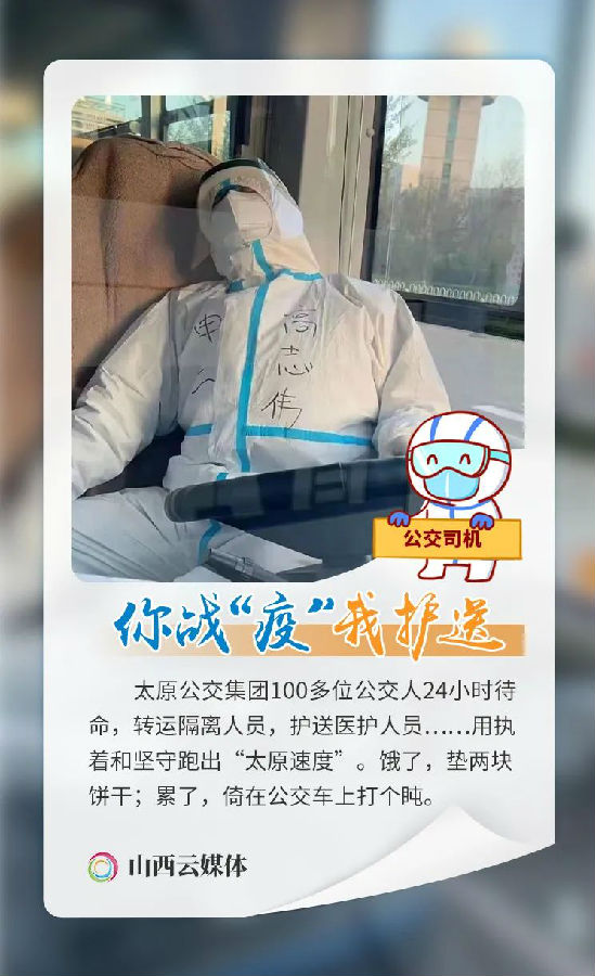 太原市发生疫情后,有这么一群人,他们是医务工作者、警察、公交司机、人民教师、保安、志愿者……正是有他们的默默奉献,才有了岁月静好;正是他们冲锋在抗击疫情的第一线,才让我们安然无恙。