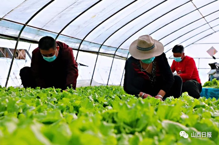 “前几天蔬菜经纪人过不来,眼看着成熟的蔬菜在地里越长越大,一家子都跟着上火,这几天有了收菜的,我们一家三口都出来干活,感谢政府,帮了我们的大忙!”4月11日上午9时,在西草寨村村民王照才、樊保爱夫妻俩的大棚里,一家三口正在收割生菜,他们将新鲜嫩绿的生菜每20斤装一筐,保质保量。他家有三个大棚,每个棚的生菜产量约1500公斤。太原市鸿新农产品有限公司每天在刘家堡乡东草寨村口设置收购点,由蔬菜经纪人将从附近村菜农手里收购的新鲜蔬菜集中后运送到公司仓库。