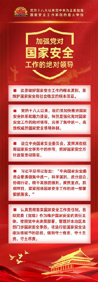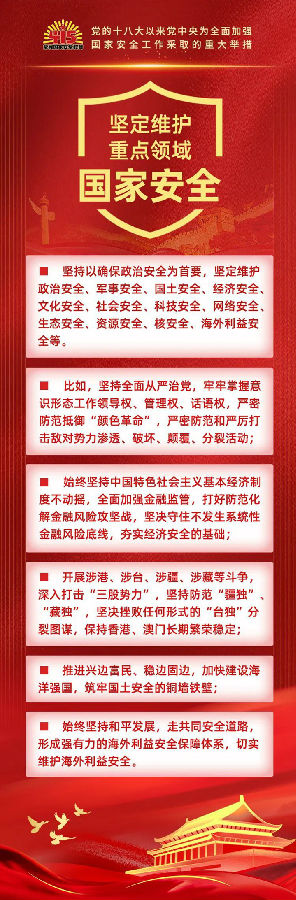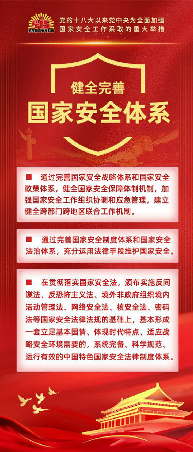 今年4月15日是第七个全民国家安全教育日,主题是“树牢总体国家安全观,感悟新时代国家安全成就,为迎接党的二十大胜利召开营造良好氛围”。党的十八大以来,党中央为全面加强国家安全工作采取了一系列重大举措。