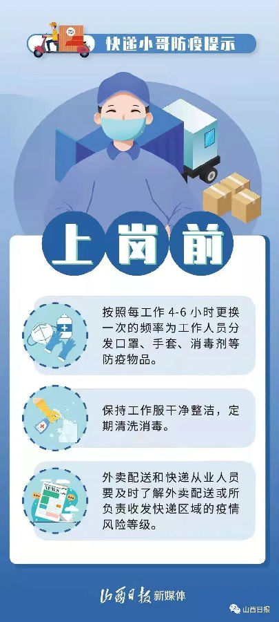 当前,快递已经成为我们日常生活种不可缺少的一部分,邮递员、快递员更是物流防疫链条中非常重要的一环,那么,快递小哥、邮递小哥们应该如何防疫呢?