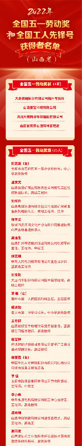 4月28日,2022年庆祝“五一”国际劳动节暨全国五一劳动奖和全国工人先锋号表彰大会以电视电话会议形式召开。山西4家单位荣获全国五一劳动奖状 ,25人荣获全国五一劳动奖章, 27个集体荣获全国工人先锋号。