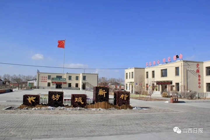 坊城新村是大同市云州区西坪镇的一个易地扶贫搬迁安置村,2018年建成使用,搬迁居民为原大坊城村和西咀村的村民。搬迁后,该村投入扶贫专项资金,利用村民流转土地发展起了黄花产业,并通过黄花特色产业、开展技能培训等措施,当年就实现了整村脱贫,乡亲们的生活发生了巨大变化。