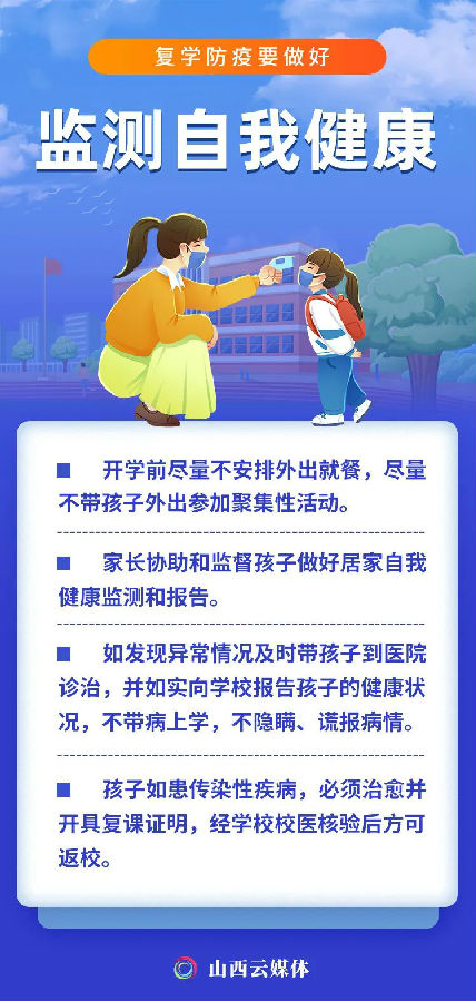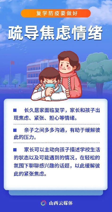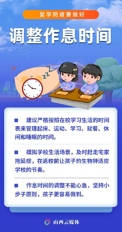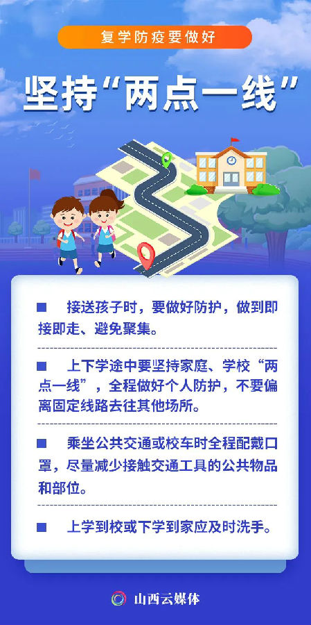 近日,太原市疫情防控领导小组办公室下发《关于统筹做好全市中小学校复学准备工作的通知》(简称《通知》)。《通知》称,根据当前太原市疫情防控整体形势,经综合研判,除封控区、管控区、防范区外,太原市中小学校(含中职学校、特教学校、幼儿园)按5月9日做好复学准备。复学需要准备什么?如何接送孩子上下学?一份清单告诉你!