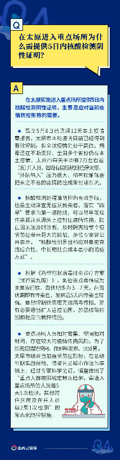 娱乐场所何时可以正常营业?为什么要实施进入重点场所提供5日内核酸检测阴性证明?2000余个检测点分布在哪里?公共交通场站内的核酸采样点是全天可做核酸吗?日前,太原市相关部门针对一些热点问题答疑解惑。