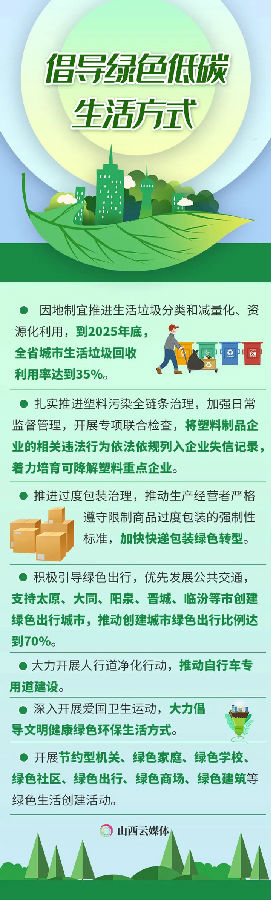 近日,山西省人民政府印发《关于加快建立健全山西省绿色低碳循环发展经济体系的实施意见》,山西将大力发展新能源和清洁能源,支持太原、大同等市创建绿色出行城市,开展节约型机关、绿色家庭、绿色社区、绿色建筑等绿色生活创建活动……一组海报看山西如何建立健全绿色低碳循环发展经济体系!