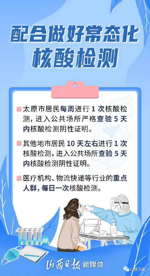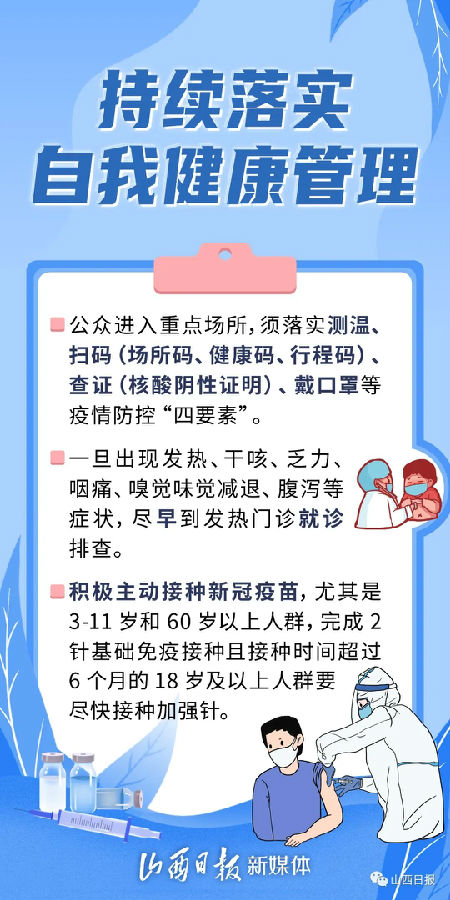 当前,国内疫情防控进入“科学精准、动态清零”阶段,为进一步落实“外防输入、内防反弹”总策略和“动态清零”总方针,持续巩固我省疫情防控成果,维护三晋人民身体健康和正常社会秩序,山西省疾病预防控制中心健康提示如下: