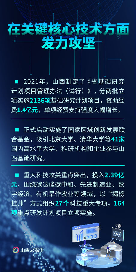 2021年是中国共产党成立100周年,也是山西科技创新和创新生态建设上具有里程碑意义的一年。山西部署了一批变革性牵引性重大举措,突破了一系列基础性全局性的工作,解决了一些多年没有解决的问题,顺利实现了“十四五”良好开局。