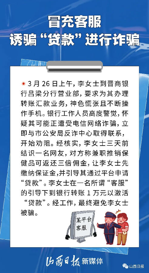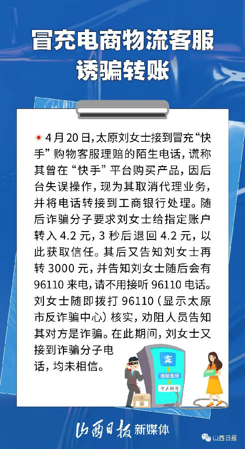 网络刷单返利、虚假投资理财、冒充电商物流客服、冒充领导……近年来,以电信网络诈骗为代表的新型网络犯罪已成为主流犯罪,并且伴随社会形势发展和社会热点,诈骗手法不断迭代更新。日前,山西发布了10起预警劝阻电信网络诈骗典型案例,让我们通过其中的一些案例,提高防范电信网络诈骗的风险意识。