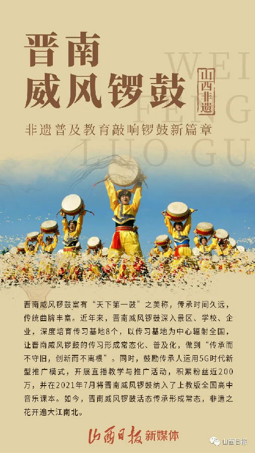 2022年“文化和自然遗产日”之际,为进一步提高人民群众非遗保护意识,传承弘扬中华优秀传统文化,营造非遗保护良好社会氛围,山西省文化和旅游厅发布了2022年全省十大非遗传承优秀案例。