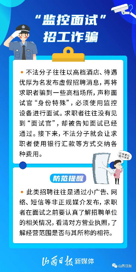 “网络刷单兼职”“见面交费”“先培训后就业”……找工作的时候,你有没有遇到过呢?又到毕业季,不少学生从校园走向社会。此时骗子们也蠢蠢欲动,打着“招工”等名义实施诈骗。以下6种常见的招聘骗局,提醒大家注意防范——