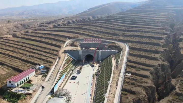正在建设中的集大原高铁项目控制性工程——恒山隧道北口