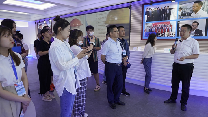 第十七届全国网络媒体山西行记者团来到位于阳泉平定县张庄镇的“新能源电池小镇”采访。记者杨惠生摄