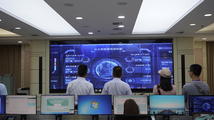 “现在大屏幕上显示内容就是能源转型分析场景,这些实时变化着的数据和指标,也代表着从电力供需、能源平衡、安全裕度等角度的监测分析,”在现场,阳泉市能源局副局长黄瑞刚告诉记者,通过企业能耗数据、政务及经济数据汇聚,开展大数据分析,就能为政府开展能源消费总量与强度“双控”形势把控、实施节能监察等提供及时准确的数据支持。