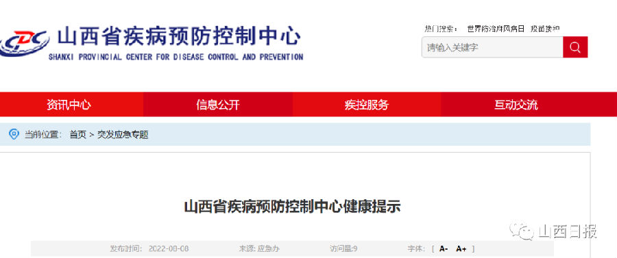 山西日报新媒体综合报道 当前国内本土疫情尚未完全阻断,呈现多点散发、多地频发的态势,防控形势依然严峻复杂,尤其是海南省三亚市疫情发展快速,疫情外溢风险较大。8月7日国内单日新增感染者涉及17个省、共报告807例,现有中高风险地区1409个。为持续坚持“外防输入、内防反弹”总策略和“动态清零”总方针,维护三晋人民身体健康和正常社会秩序,山西省疾病预防控制中心健康提示如下。