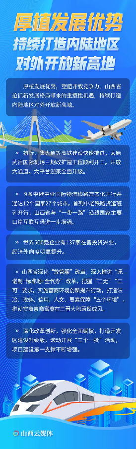 党的十八大以来,习近平总书记三次到山西考察调研,作出一系列重要指示,希望山西在转型发展上率先蹚出一条新路来。牢记殷殷嘱托,山西砥砺前行。面对“如何率先蹚出转型新路”“如何在中部地区争先崛起”等“时代之问”,山西省以全新视野谋划长远发展,优化布局、提升能级,用好改革开放关键一招,着力打造“三区三地”,为全方位推动高质量发展开拓新空间、注入新动能。