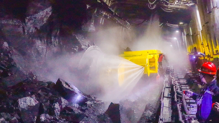 山西焦煤山煤国际霍尔辛赫煤业3803工作面,员工通过综合机械化、智能化采煤设备,实现了安全高效生产。李俊杰摄