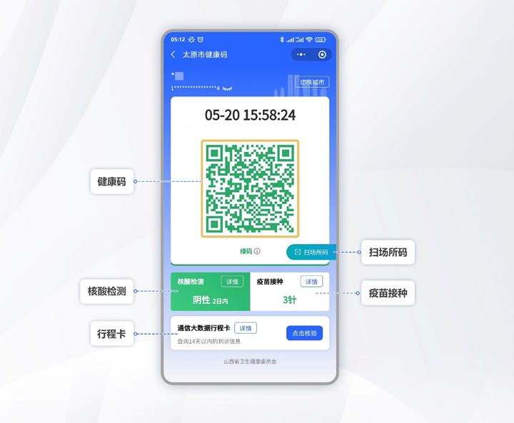 “山西健康码”微信小程序(以下简称“微信健康码”)涵盖更多功能,打开微信就能申领健康码。除了使用支付宝APP外,只要上微信就可以随时申领山西健康码,也能扫场所码,进一步丰富申领渠道,提升了市民体验。