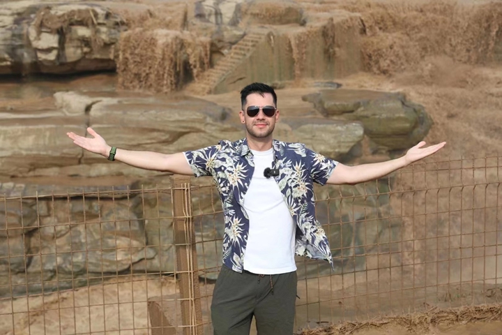 委内瑞拉视频博主拉斐尔在壶口瀑布前留影 摄影 张小军