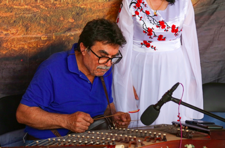 叙利亚画家瓦利德体验中国传统乐器 摄影 张小军