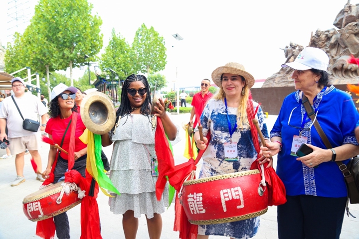 外国网红在锣鼓声中感受民俗文化魅力 摄影 张小军