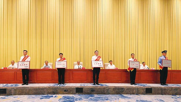 9月6日,在全省信访工作会议上,省委书记林武向全省信访系统先进集体和先进工作者颁奖。记者史晓波摄