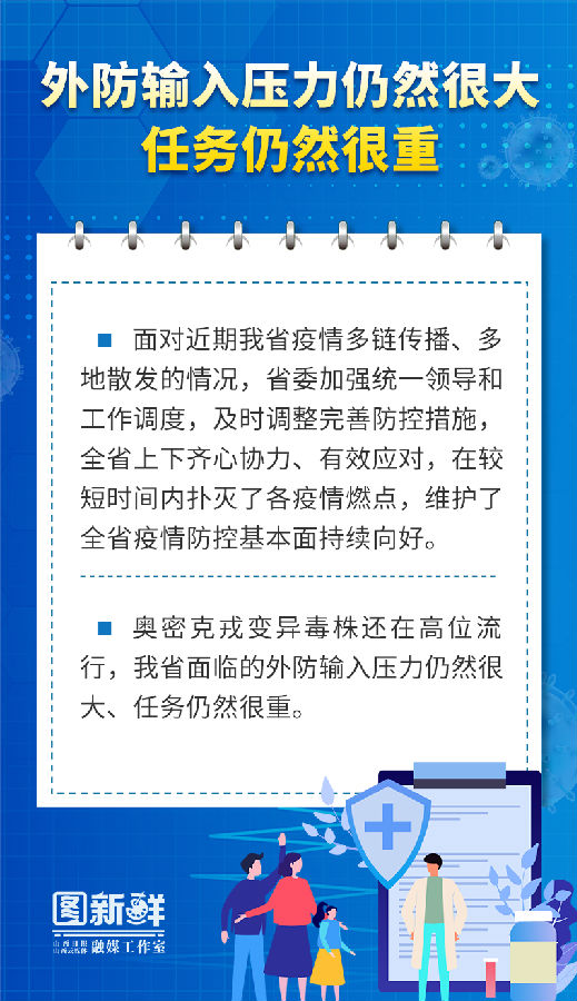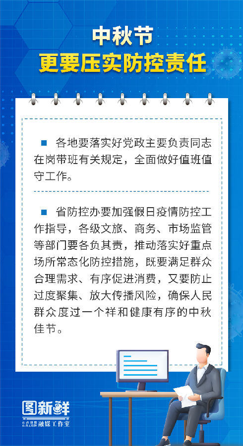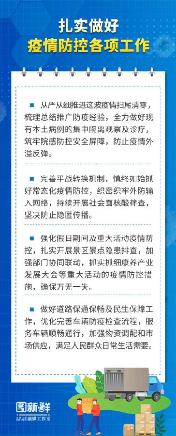 他强调,要深刻认识疫情防控的复杂性、艰巨性、反复性,坚持总策略总方针不动摇,落实“早、快、准”要求不松劲,严格执行行之有效的机制措施,牢牢掌握防控工作主动权,坚决守住不出现疫情规模性反弹和隐匿传播的底线,确保人民群众度过一个祥和健康有序的中秋佳节。