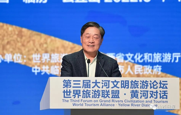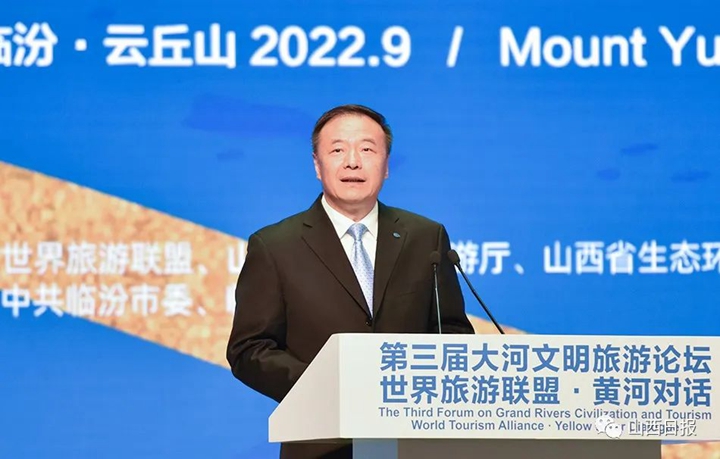 山西是华夏民族的发源故里,也是中原黄河文明的核心。今天我们再次齐聚在黄河之滨,论大河之道,寻合作之路、谋共赢之策,共同探索和实践河流生态保护与美好生活的共享,这具有十分重要的意义。我们希望通过世界旅游联盟黄河对话活动,推动世界各大河之间的交流互鉴,探讨大河流域的文化传承和旅游发展,为助力全球文化和旅游事业高质量发展来贡献微薄的力量。