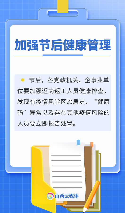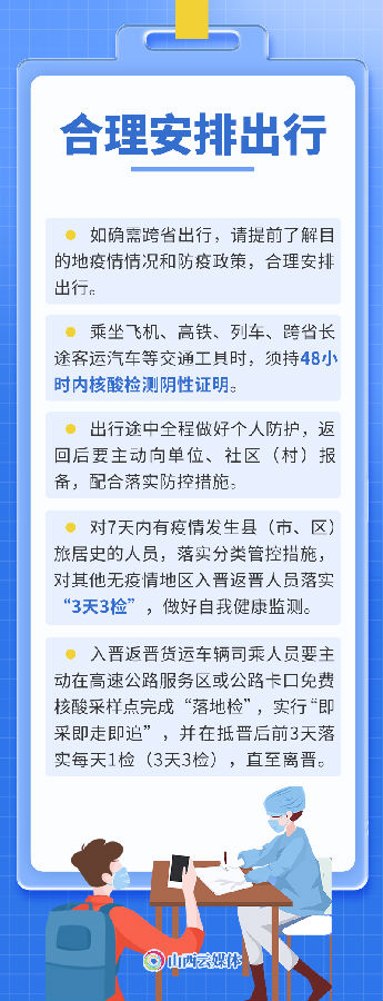 为做好国庆期间疫情防控工作,9月28日晚,山西省疫情防控办发布了国庆疫情防控健康提示。