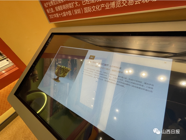 在“坚定文化自信 建设社会主义文化强国”单元,今年故宫博物院开年大展“何以中国”展览以互动显示屏的形式向观众呈现十年来文化建设领域的重大成就。山西作为文物大省,自然少不了展示风采。指尖滑动,显示屏上就会出现隋彩绘骆驼俑、北朝四面佛龛石造像塔和唐六曲花卉纹金杯这3件来自山西博物院的珍贵文物。