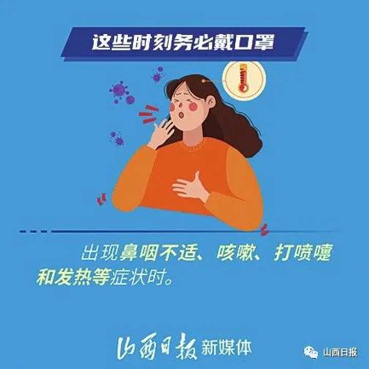 当前疫情形势复杂严峻,规范佩戴口罩是阻断新冠病毒传播的重要手段之一。疫情期间,请牢记,这些时刻务必佩戴口罩。