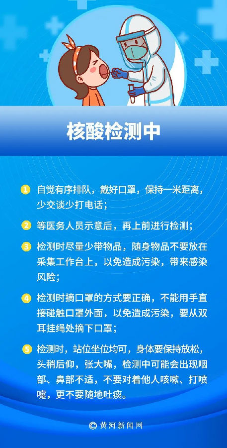 “做核酸啦!”带好口罩、有序排队、张大嘴巴、保持间距、做完离场……平日里,你是不是按照这个流程去完成核酸检测?这几步看似简简单单,实则必须要围绕一个关键词——“严格”进行。在整个核酸检测过程中,还有什么注意事项?一起来get!