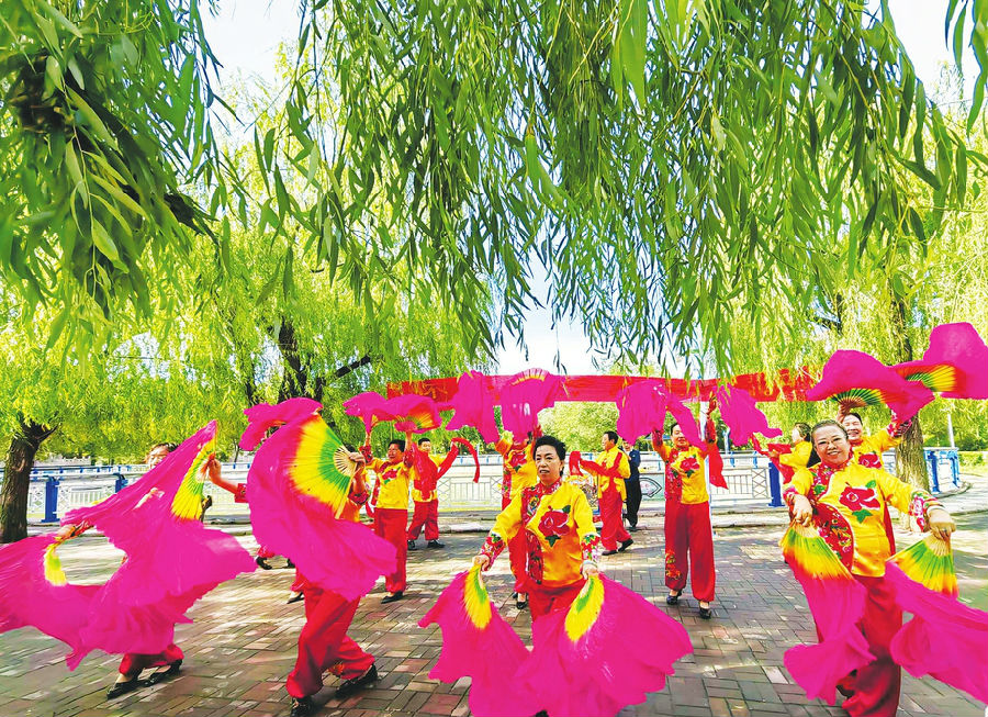 怀仁积极开展志愿服务进社区活动。图为当地群众自发组建的艺术团为社区居民表演节目。本报通讯员摄